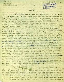 de mai 1947 à mars 1949 ; 36 pages in-4° et 17 pages 1/2 in-8°, avec le cachet de la censure, quelques lettres abîmées.