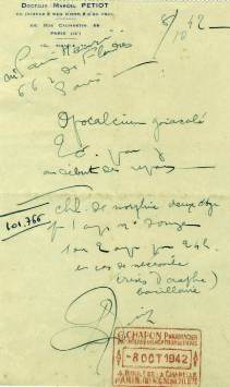 Pièce autographe signée. Octobre 1942 ; 1 page in-16 à son
