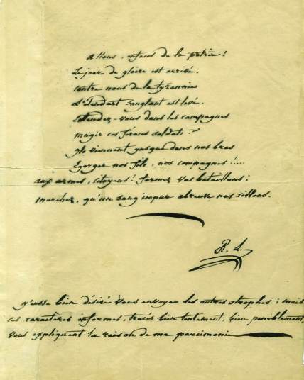 Premier couplet et refrain de la Marseillaise écrit par son auteur.