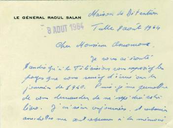 « Maison de détention, Tulle, 8 août 1964 » ; 140 x 105 mm. Enveloppe