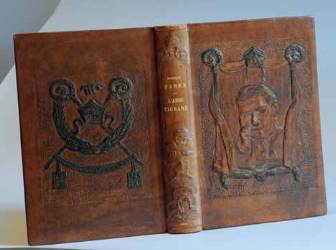 en cuir repoussé plein veau marron. Premier plat représentant l’abbé Tigrane, dernier plat représentant