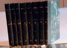 Vélin. 8 volumes grands in-8 reliés demi chagrin vert Empire à coins, dos à