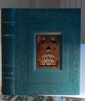 Reliure éditeur plein chagrin bleu canard, plats à décor à froid et incrustation au centre d’une plaque gravée représentant une église
