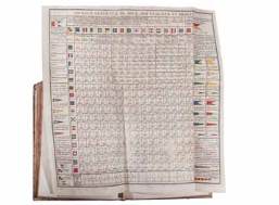 à pleine page et d’un tableau dépliant des signaux gravé sur peau de vélin avec les pavillons aquarellés.