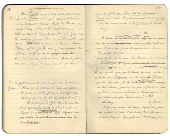 Ensemble de 2 carnets autographes, format 16 x 12 cm (1934) et 16,5 x 10 cm (1935), reliés en toile souple. Il s’agit de fragments de