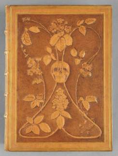 veau fauve, dos à nerfs orné de fil. dor., plat sup. avec un décor ci-