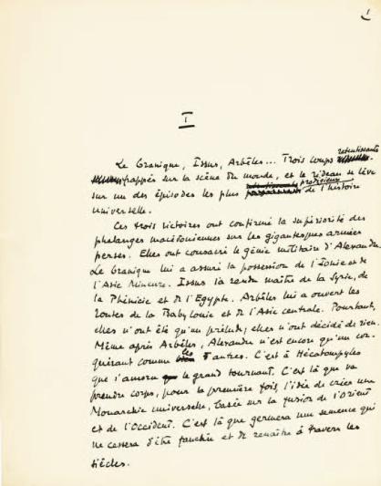 Manuscrit complet de cette belle biographie d’Alexandre le Grand, parue en 1964 à Lausanne, à la Guilde du Livre,