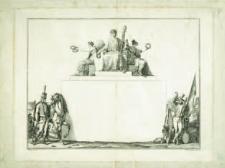 Gravure de J. Duplessis-Bertaux d’après un dessin de Carle Vernet, aux emblèmes de la République et de la vie militaire ;