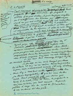 (n° 128) le 25 mars 1944. Le manuscrit, sur papier bleu, présente d’importantes additions et corrections. Le titre