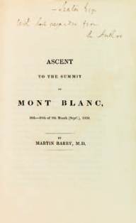 170 BARRY (Martin). Ascent to the Summit of Mont Blanc, 16th-18th of 9th Month (September), 1834. S.l.n.n. [À la