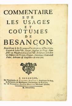 424 ORIVAL (Claude-François d’). Commentaires sur les usages et coûtumes de Besançon.