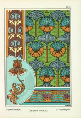etc. — et représentent divers types d’ornement floraux, classés par végétal illustré et légendés en anglais, en français et en