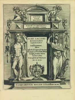 Très belle édition allemande du livre d’emblèmes de Jean-Jacques Boissard, publiée et illustrée par l’imprimeur Johann