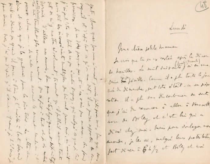 106. Marcel PROUST (1871-1922). L.A. (la fn manque), Lundi [1 er septembre 1902], à sa mère ; 4 pages in-8.