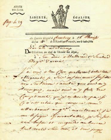 Rarissime lettre du futur général Lasalle, alors aide de camp de Kellermann à l’Armée des Alpes.