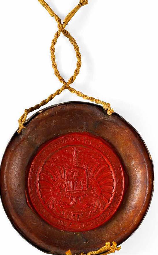 Superbe empreinte du petit sceau de Charles Quint : l’aigle impériale, bicéphale & couronnée, porte l’écu des Espagnes: légende circulaire.