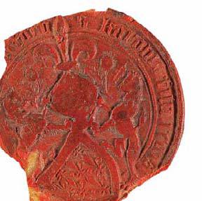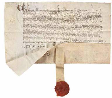 le de parchemin (36 x 21 cm) écrite en français, à l’encre brune, scellée d’un sceau héraldique de cire rouge sur uble queue, signée et contresignée.