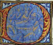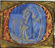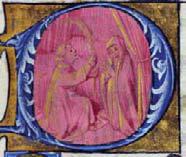 • le peintre des sept lettrines en camaieu d’or : cette technique dont Jehan Fouquet est le père, est pratiquement la « marque » de l’atelier tourangeau de Fouquet. Il semble que le peintre ne soit pas le même que celui des onze grandes enluminures, mais il est diffcile de comparer les mains s’appliquant à deux techniques différentes.