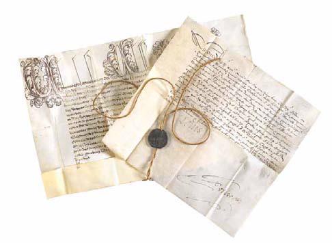 Feuille de parchemin (44 x 33 cm), écrite en latin, à l’encre brune, munie de la bulle de plomb sur cordelette de chanvre ; lettrines & signatures.