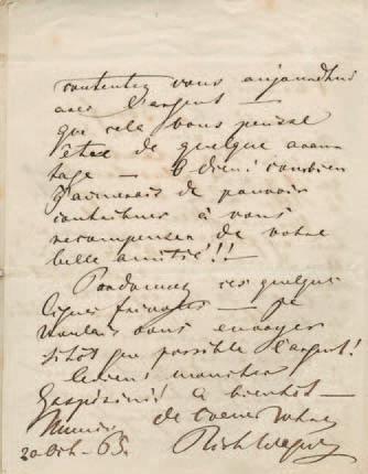 317. Richard WAGNER (1813-1883). L.A.S., 20 octobre 1865, à son ami Auguste de G aspérini ; 2 pages in-12 ; en français. 2.500/3.000