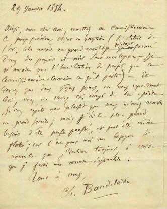 337. Charles baudelaire (1821-1867). L.A.S., 29 janvier 1854, à l’acteur Hippolyte T isserant ; 1 page in-12 (remplie d’une écriture serrée,
