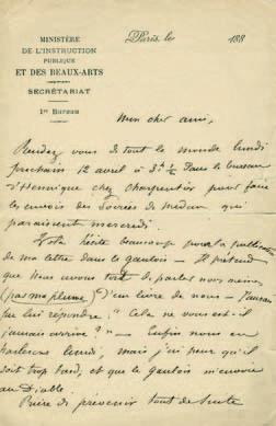 421. Guy de maupassant (1850-1893). L.A.S., Paris [début avril 1880, à Henry C éard ] ; 1 page et quart in-8, en-tête Ministère de l’Instruction