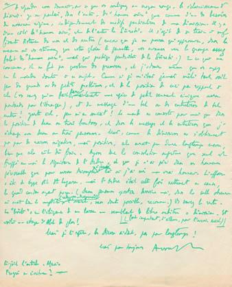 453. Roger peyrefitte (1907-2000). L.A.S. « R. », Alet 28 octobre 1940, [à Henry de M ontherlant ] ; 3 pages in-4 à l’encre verte.