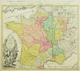 Jeunesse Norimb. 1741, avec Privil.Imp. Titrée dans un cartouche historié en bas à gauche jusqu’au centre « Regni Galliae seu Francia