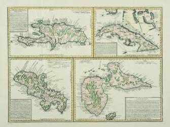 Carte de S. Domingue../ de Cuba../ de La Martinique../ de la Guadeloupe.. Paris ca. 1750. Col. d’époque. 365 x 488 mm.