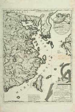 de titre et d’échelle et d’instruments de marines. - The map depicts the eastern part of China with Korea -correctly- as a peninsula. Formosa is