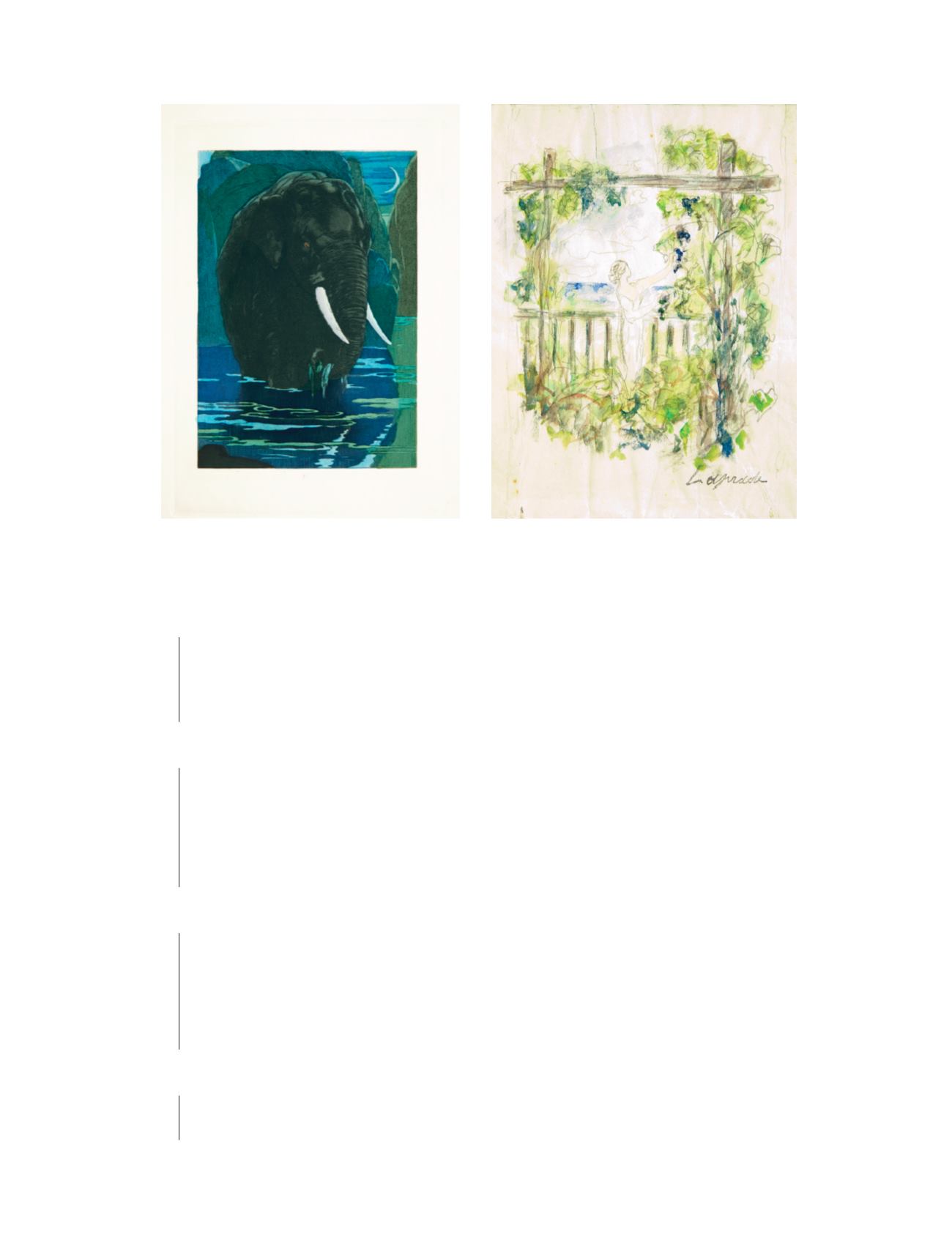 Ces dessins et aquarelles ont été habilement encartés dans des feuillets de Japon et mis au format.