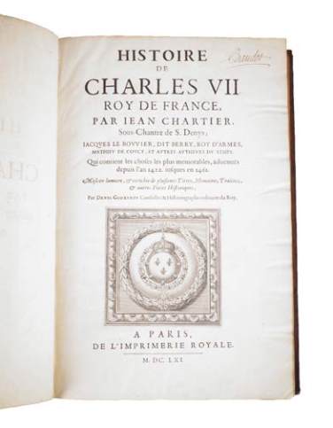 historiques, par Denys Godefroy. Paris, de l’Imprimerie Royale 1661.In-folio ; veau