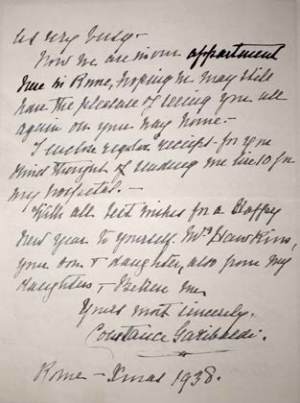 44 Lettre autographe de voeux de Constance Garibaldi, veuve de l'homme politique, de