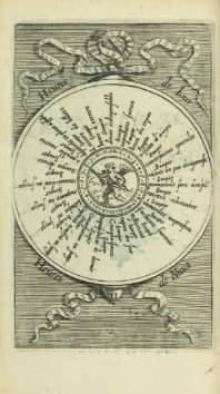 amant Damon une montre, et lui prescrit l’emploi qu’il doit faire de chaque heure pendant leur séparation. Frontispice