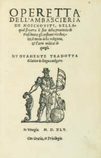 113 [GIOVIO (Paolo)]. Operetta dell’ambascieria dei Moschoviti, nellaqual si narra il sito della provincia di Moschovia,