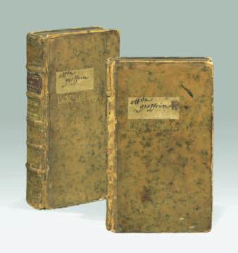 2 volumes in-16, veau marbré, filet à froid, inscriptions manuscrite et
