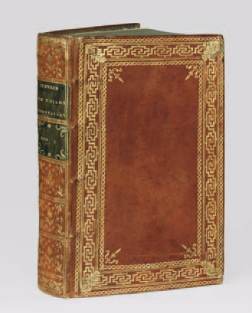 rouge, large grecque dorée entre deux doubles filets droits et torsadés, petits fleurons en angle, dos lisse orné aux
