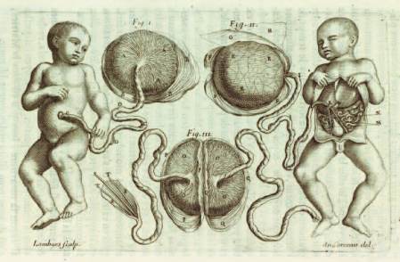 On a monté sur une garde, à la fin du volume, une figure d’obstétrique gravée, accompagnée d’une note manuscrite