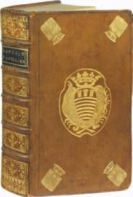 In-8, veau fauve, petites armoiries aux angles, grandes armoiries au centre du premier plat et supralibris doré au