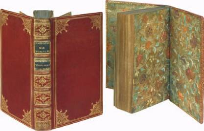 dorée et sur les coupes, gardes de papier dominoté doré et colorié, tranches dorées (