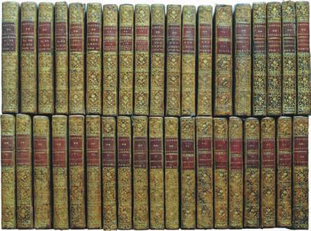 60 volumes in-8, veau fauve marbré, encadrement d’un filet