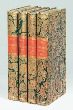 4 volumes in-12, bradel cartonnage marbré, pièce de titre orange,