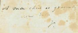 ENVOI AUTOGRAPHE PARAPHÉ À JULIE CHENAY, la sœur cadette d’Adèle Foucher :