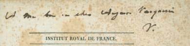 ENVOI AUTOGRAPHE PARAPHÉ À AUGUSTE VACQUERIE. Le poète et dramaturge romantique Auguste Vacquerie