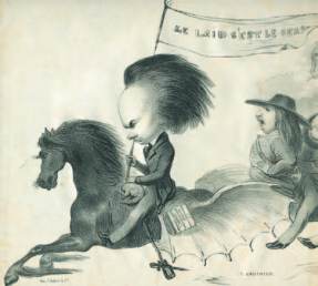caricaturant les écrivains et artistes romantiques, Hugo en tête, menant