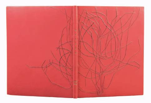 Petit in-4 plein box vieux rose, illustré sur les deux plats