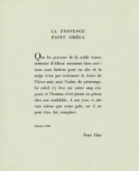 78 CHAR (René). LA PROVENCE. OMÉGA. POèME AFFICHE.