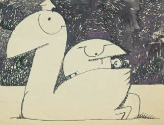 Lettre autographe signée au stylo à bille de Jean Cocteau à Georges Hugnet, enluminée d’un dessin original au crayon
