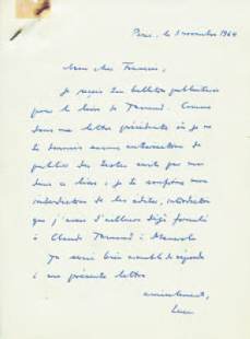 192 LUCA (Gherasim). CARTE AUTOGRAPHE, BILLET AUTOGRAPHE SIGNÉS ET DÉCOUPAGE ORIGINAL À