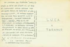 signé par Luca et adressé à Claude Tarnaud comportant un découpage